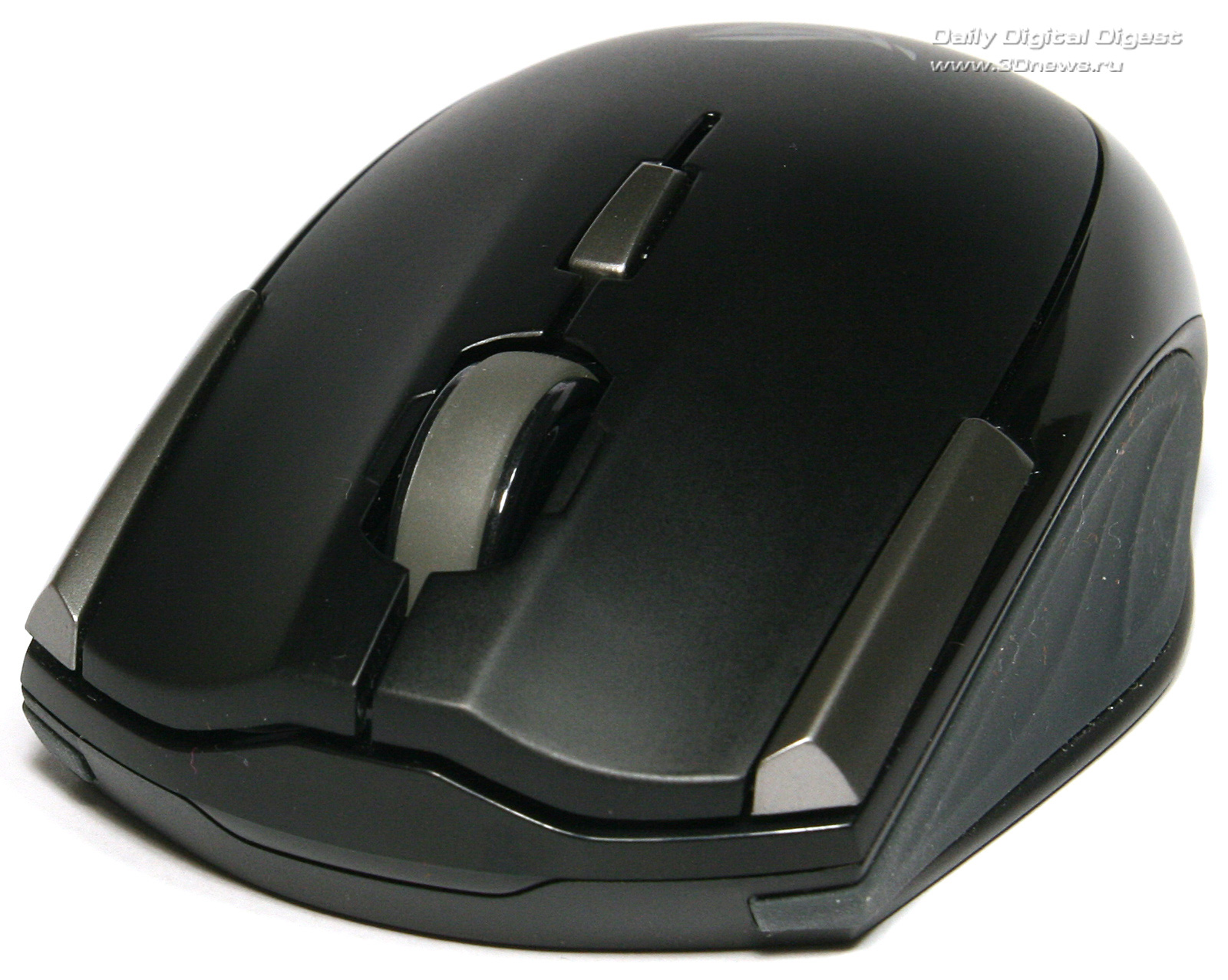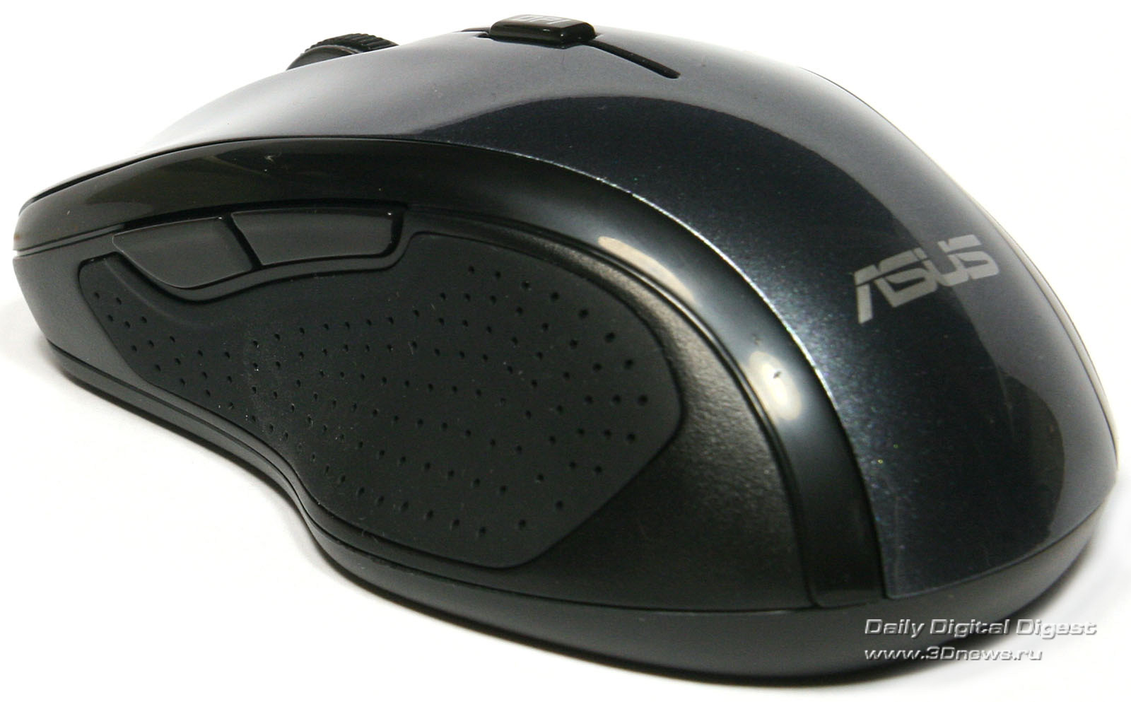 Для наиболее надёжного захвата вогнутая левая грань корпуса манипулятора имеет резиновое покрытие с пупырышками. Правая грань такого изыска лишена, но в отличие от основной лакированной части корпуса имеет шероховатую поверхность, что позволяет без проблем перенести ее над столом, если понадобится.Боковые поверхности корпуса манипулятора ASUS WT460