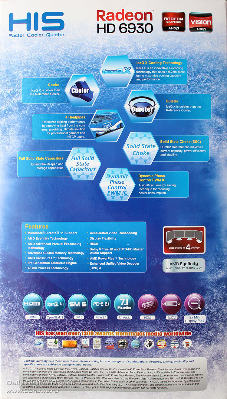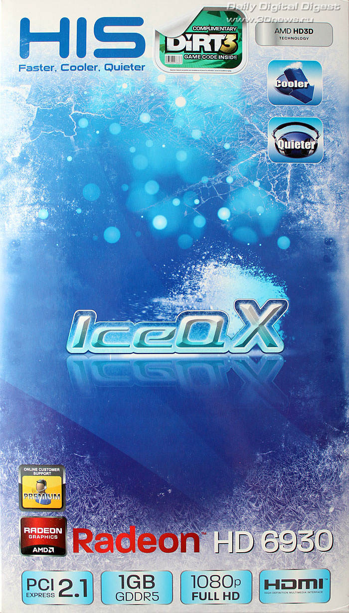 Однако на одном ограничении — по срокам выпуска HD 6930 (ориентировочно — первый квартал 2012 года) — AMD не ограничилась, и выпустила эту видеокарту только на два рынка — российский и китайский, а также позволила реализовывать её только трём компаниям: PowerColor, Sapphire и Hightech Information System Ltd. Как раз с продуктом последней — HIS Radeon HD 6930 IceQ X 1 Гбайт — мы и познакомимся в сегодняшней статье.