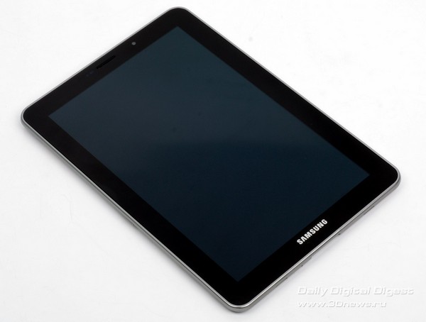7.7 похож именно на Galaxy Tab, а не на что-либо другое.Так как форма и расположение органов управления у новинки исключительно стандартные, то пользоваться ей вполне удобно — эргономических просчетов почти нет. Лично автору этой заметки не по душе типично самсунговское расположение кнопки включения на боку, но автор, как известно, тот еще привереда. Все остальное на своих местах: регулировки громкости на том же боку, заглушки разъемов для SIM-карты и «микроэсдишки» — на противоположном. Снизу поселились два динамика (оба рукой перекрыть можно, но сложно), микрофон и 30-контактный фирменный разъем, сверху — еще микрофон и 3,5-мм «мини-джек».