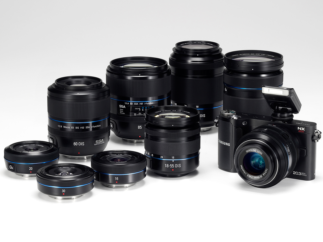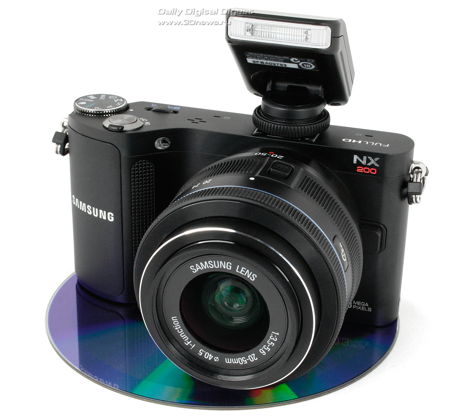 ПК лишаются оптических приводов.Что касается аксессуаров, то тут у камер серии Samsung NX всё в полном порядке — ремни, сумки, чехлы, GPS-приёмник, более мощная вспышка (ведущее число 20 при ISO 100), светофильтры, бленды, переходник на объективы Pentax K и, конечно же, масса самих объективов. В списке последних одних только "блинчиков" три штуки (16, 20 и 30 мм), стоит обратить внимание на 85-мм светосильный «фикс» (ƒ/1,4), кроме того, есть парочка универсальных и пара телефото зум-объективов. В общей сложности 9 штук (и пара серебристых объективов — "блинчик" 20 мм и китовый 20-50 мм). На тестирование же были предоставлены «китовый» зум-объектив 20-50 мм 1:3,5-5,6, а также "блинчик" 20 мм 1:2,8.