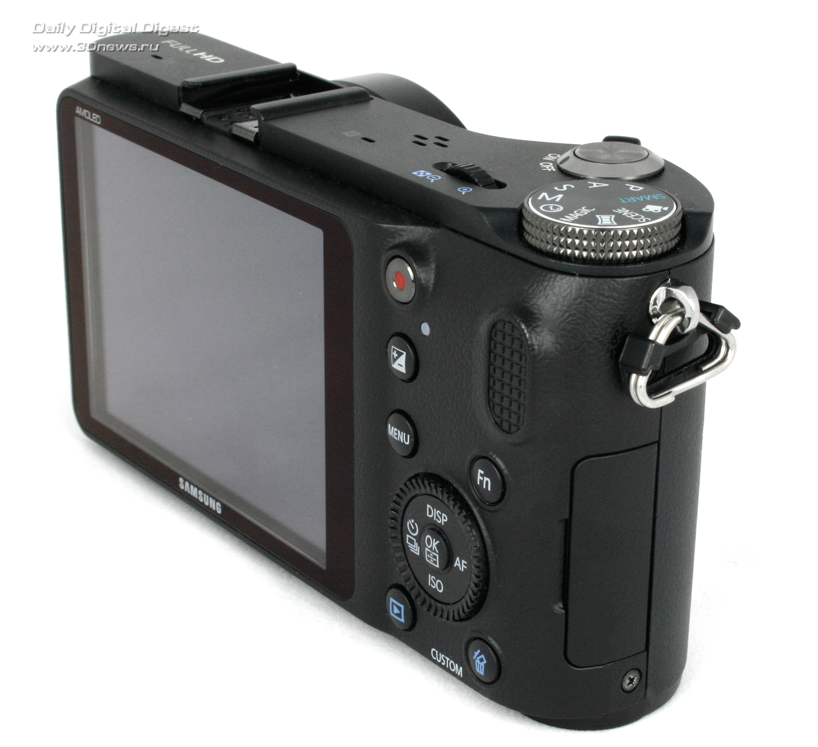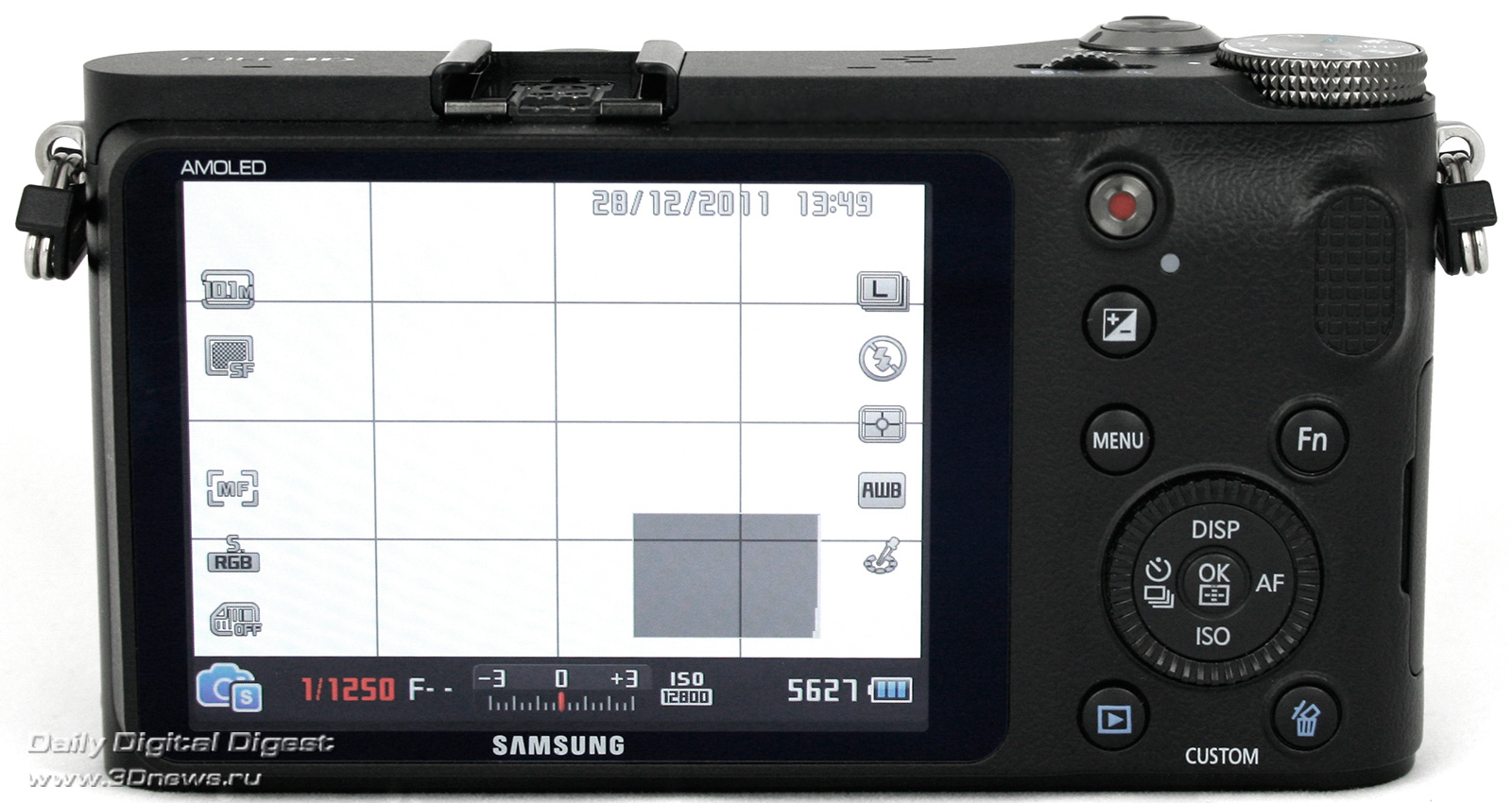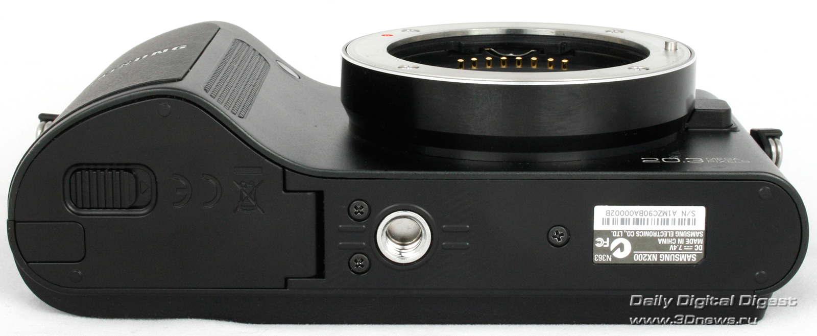 как NEX-5N и NEX-7 значительно крупнее и тяжелее.NX200 хорошо лежит в руке средних размеров, а благодаря накладке на лицевом выступе и шероховатой площадке в верхнем правом углу тыльной панели (под большой палец) не выскальзывает из рук. Качество сборки безупречное, придраться не к чему.