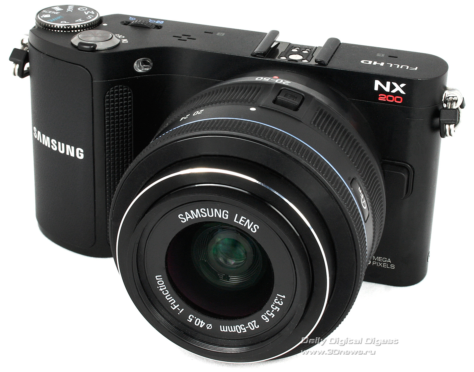 Компания Samsung всерьез взялась за рынок беззеркальных фотоаппаратов, и на данный момент линейка Samsung NX среди системных камер одна из самых насыщенных, но, к сожалению, NX200 стала первой из них, которая попала к нам на полноценное тестирование. Как и предшественница, модель NX100, тестируемая камера оборудована КМОП-матрицей формата APS-C, такой, как, например, у камер Sony. Во всех рекламных материалах акцентируется внимание на физическом размере матрицы, который больше, чем у сенсоров Micro Four Thirds ("беззеркалки" Panasonic и Olympus). От себя добавим, что ещё и значительно больше сенсоров формата CX, которые Nikon ставит в свои системные камеры. Кроме прочего, сразу стоит отметить наличие "горячего башмака", AMOLED-дисплея, массы режимов обработки и настроек в режиме видеосъёмки. В общем, функциональность NX200 довольно широка.